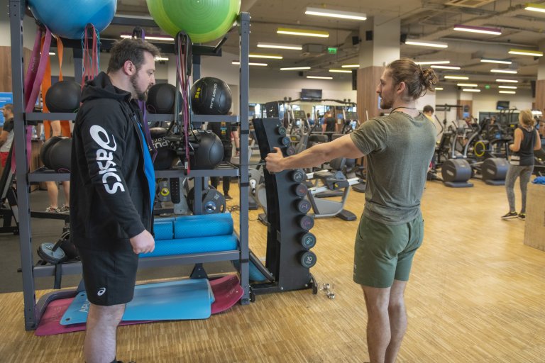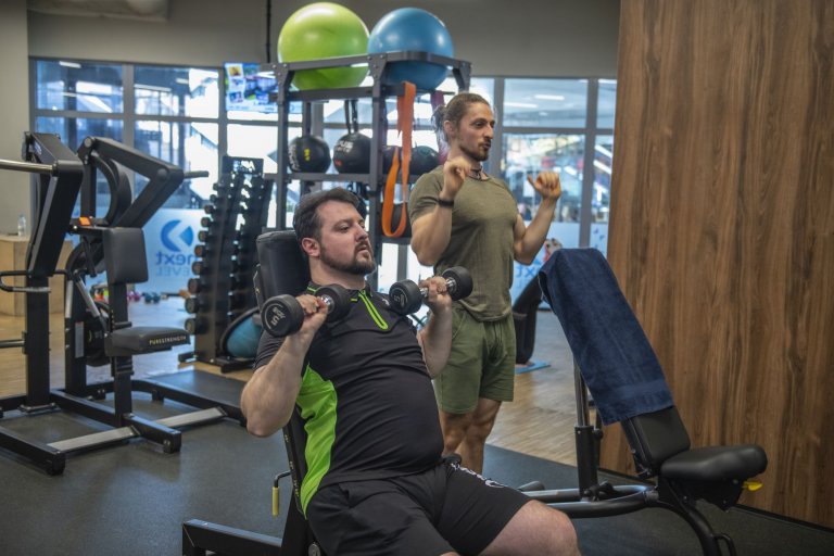 Тук, в забързания град, той ще тренира в Next Level Fitness Club в спортното облекло на Asics и под зоркото око на своя треньор - Кристиан Йонков или Крис, както Александър го нарича.