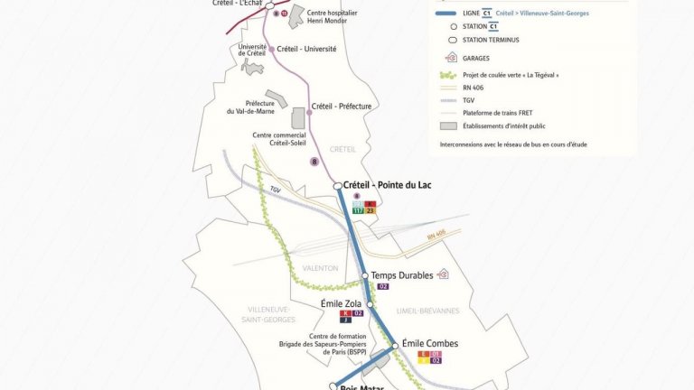 Лифтът ще свързва предградието Вийеню Сен Жорж със станцията Понт дю Лак в градчето Кретей за 17 минути, което е на половината на времето, което би отнело пътуване с автобус. Спирката на Понт дю Лак е на близко разстояние от линията на столичното метро.