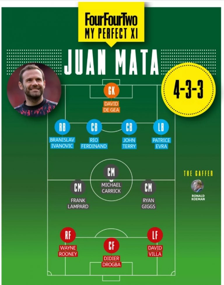 Въпреки че изкара само две години и половина на "Стамфорд Бридж", Мата избра цели четирима бивши съотборници от Челси, когато бе помолен да състави своя идеална 11-орка.