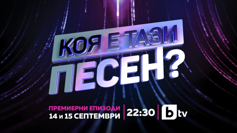 Следващият уикенд ще е особено музикален за bTV. Премиерните епизоди на "Коя е тази песен?" ще се излъчат след епизодите от 11-тия сезон на "Гласът на България", който започва също на 14 и 15 септември от 20:00 ч.