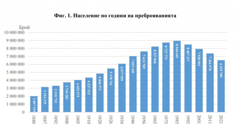 Населението на България се е стопило до 6 519 789 души, сочат окончателните данни от преброяването през 2021 г. обявиха от Националния статистически институт (НСИ).