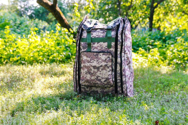 Раницата задължително трябва да е непромокаема, в камуфлажен или тъмен неутрален цвят, да е с дебели здрави презрамки и да разполага с няколко удобни отделения.