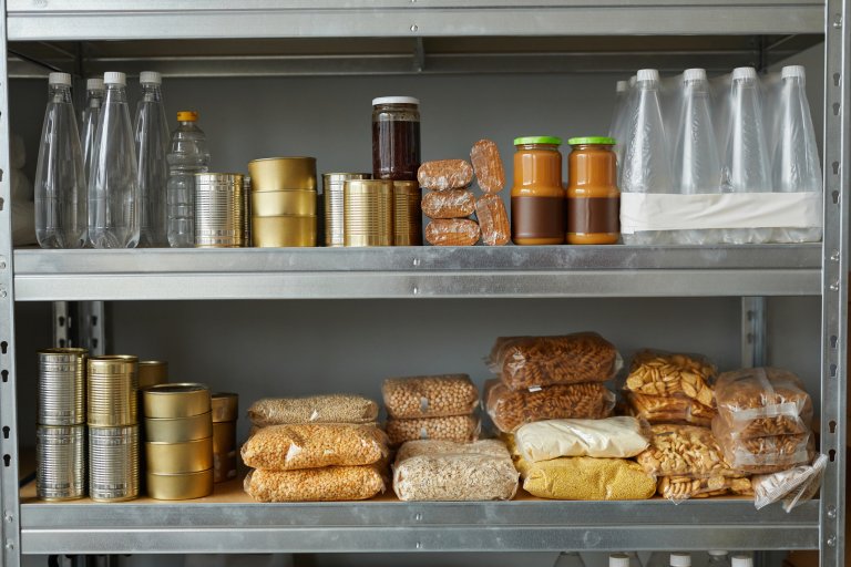 В него влизат зърнена закуска, готови макарони, готови супи и готви консервирани ястия с месо и зеленчуци. Не се изкушавайте да взимате пакети с ориз, паста, боб, грах и други продукти, които искат термична обработка.