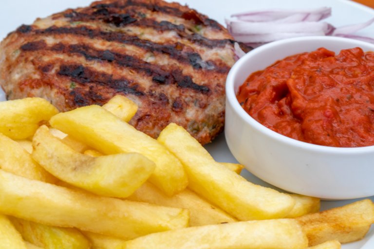 Вместо бургер - тройка кюфтета, ПКС, лютеница и две филии хляб