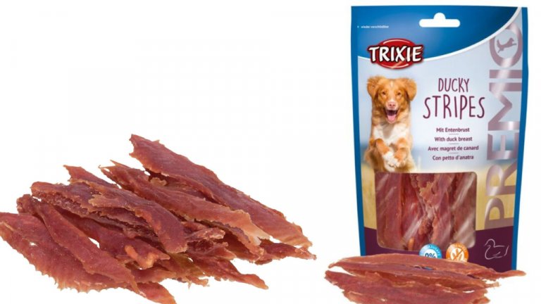 Избирам и кучешко лакомство с лентички от патешки гърди - те са по-леки и диетични и са идеални за кокерите като моя Бруно. Добавям и пакет от кремообразното лакомство с мус от пилешко месо, защото знам, че той е луд по точно този тип деликатеси.