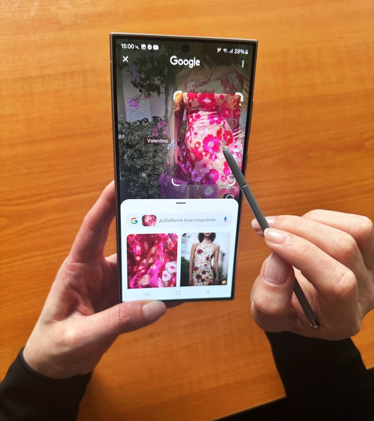Писалката към Samsung Galaxy S24 Ultra позволява изключителна прецизност, така че да оградите точния обект, който търсите. Това помага, когато на снимката са група от хора с разновидности от дрехи и обувки, а вас ви интересува един от изложените модели.