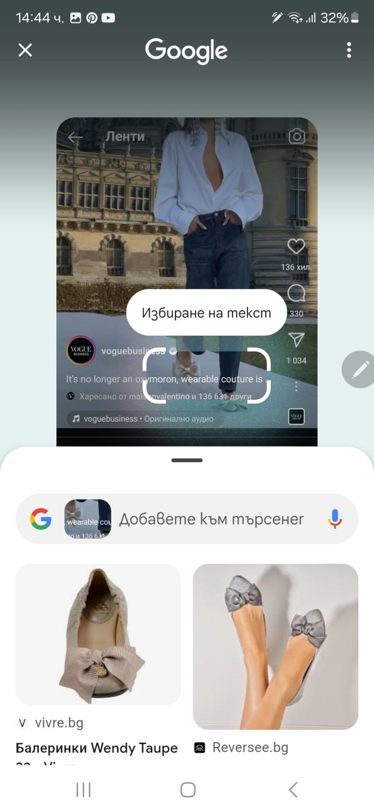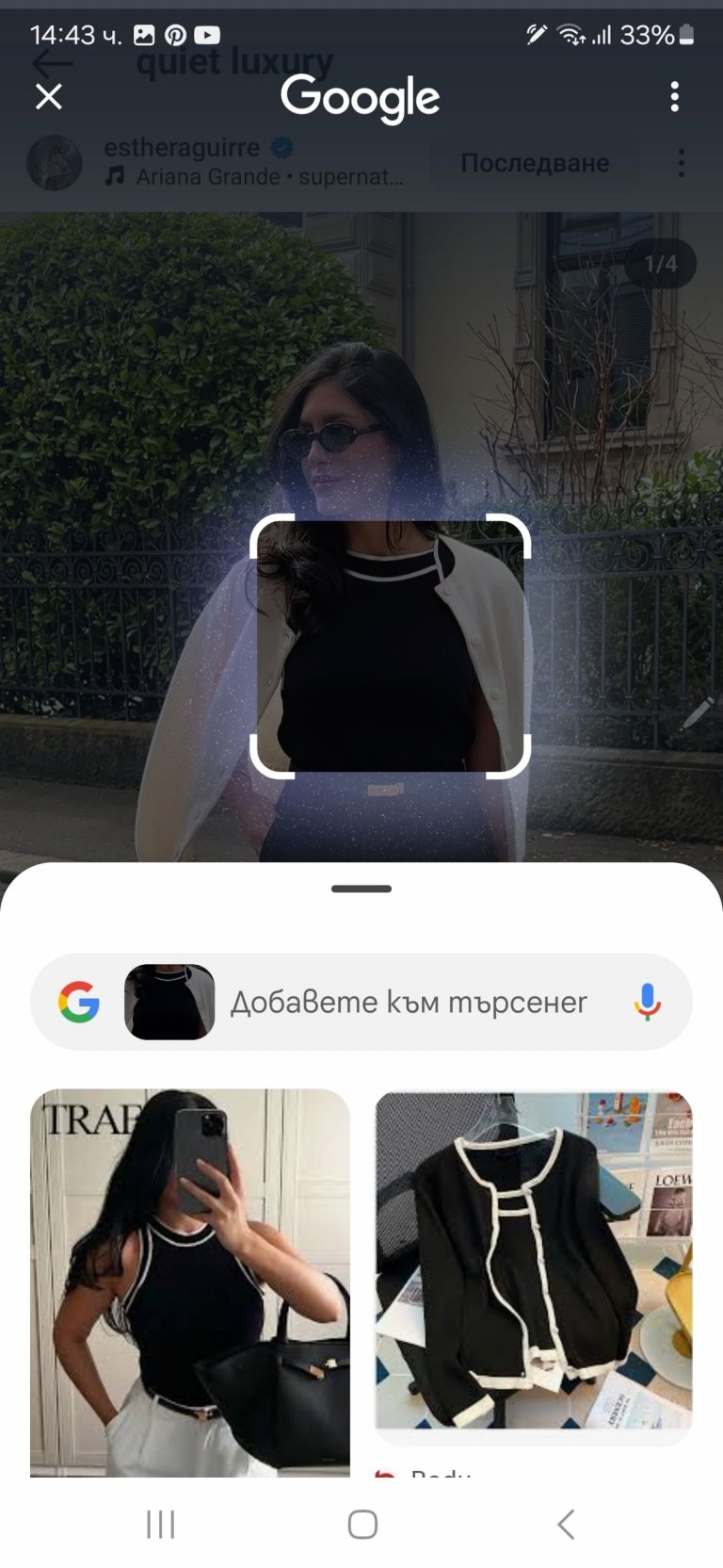 А най-удобното е, че докато Circle to Search with Google си върши работата, не ви отписва от приложението, което ползвате. Не е нужно да излизате от Instagram или TikTok, докато харесаната от вас дреха се търси.