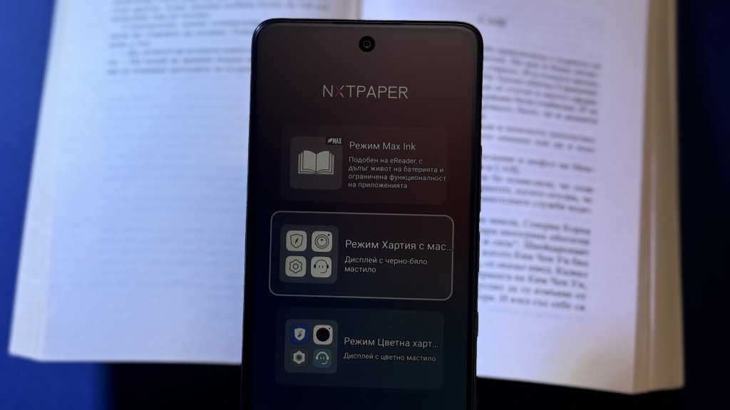 Друг интересен режим е INK Paper. Той е черно-бял и визуално най-много напомня на усещането при електронните четци. Всъщност дори е малко по-добре