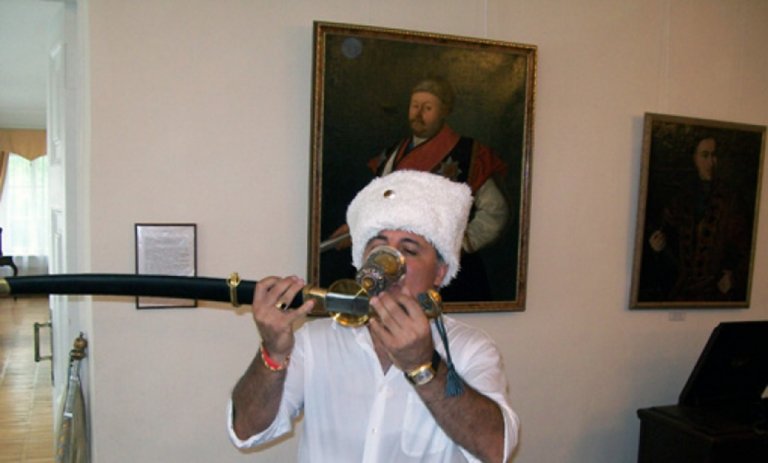 На втория етаж, в залата на Александър I, вече очакват българина, а шоуто тепърва предстои. На Ицо му е сложен бял калпак и символично го бичуват с камшик, след което му носят чаша водка на сабя. Стоичков отпива, след което се впуска в танц с достолепна местна дама.