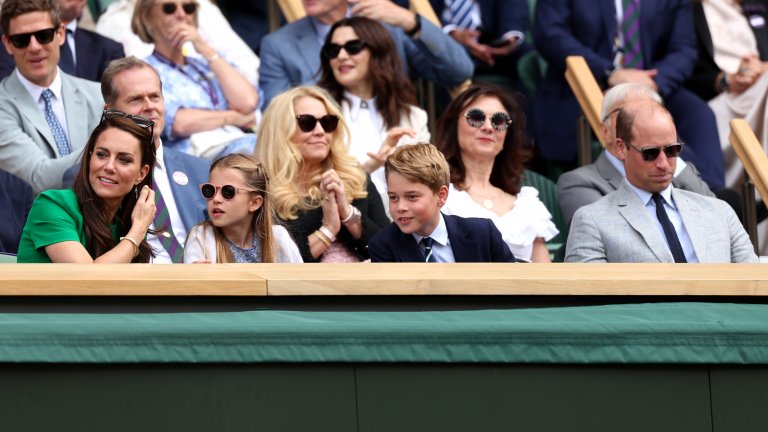 На първа линия в кралската ложа, разбира се, бяха принцеса Кейт - патрон на "Ол Инглънд Клъб", принц Уилям и децата им - Шарлът и Джордж.