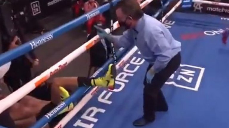 Боксовата гала в Сан Антонио през изминалата нощ предложи рядко виждан нокаут.
