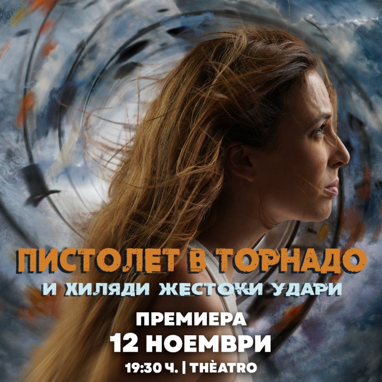 И това е първият ѝ моноспектакъл по пиесата "Пистолет в торнадо", чиято премиера, както казахме, е на 12 ноември.