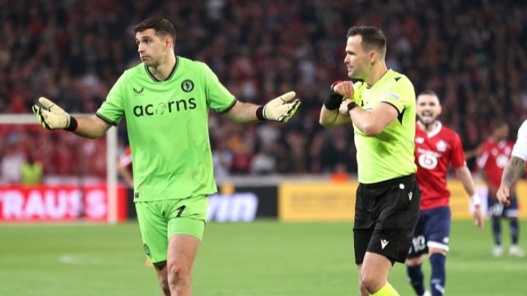 Въпреки че не бе изгонен, британският таблоид "Мирър" и други медии съобщават, че Емилиано Мартинес в крайна сметка ще бъде наказан за полуфинала в Лигата на конференциите срещу Олимпиакос и няма да може да играе в първата среща с гърците.