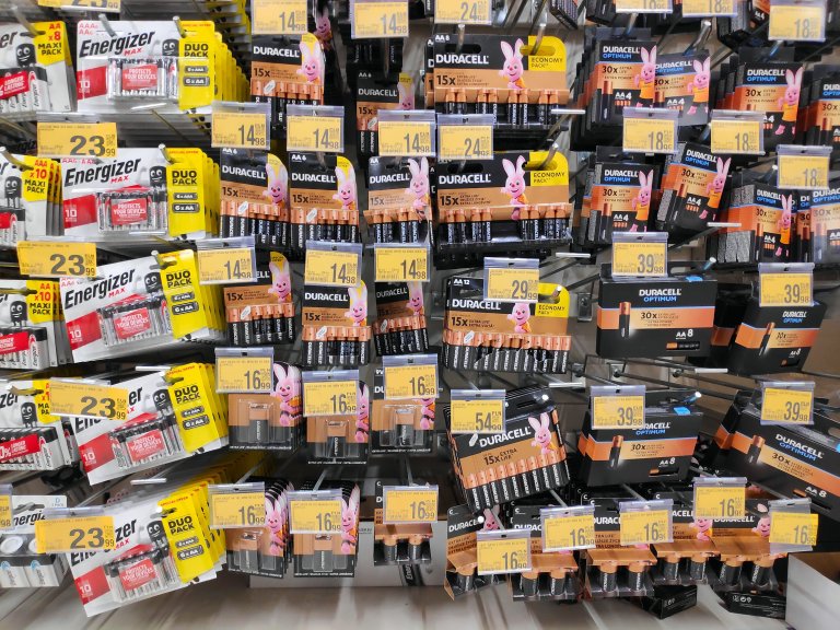 Нерядко батериите стоят някъде около касите и са пред очите ни, докато чакаме да платим покупките си.