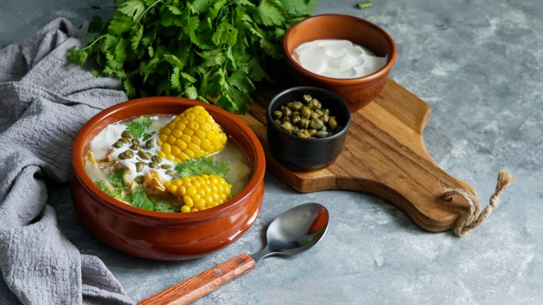 Супата се прави от 2-3 парчета пилешки гърди, които се варят с нарязан на няколко парчета кочан прясна царевица, 2 кубчета пилешки бульон, 2 скилидки чесън, връзка зелен лук и шепа кориандър (или магданоз). След като пилето е готово, се вади, за да се досготви царевицата. Добавят се нарязаните на ситно около 7-8 картофа и 1 с.л. риган, вади се зеленият лук, а когато всичко е готово, се връща нарязаното пиле.