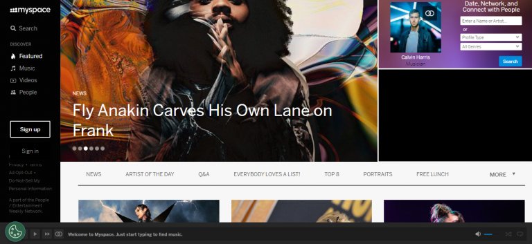 Преди Facebook да се появи на сцената, MySpace беше водещата социална мрежа. Стартира на 1 август 2003 г. и е първата платформа, която достига глобална аудитория и има значително влияние върху технологиите, поп културата и музиката, като потребителите ѝ старателно сглобяват профилите си чрез кодове за вграждане на снимки, текстове и дори музикални плейъри.