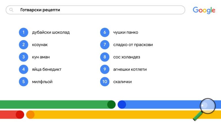 При готварските рецепти обаче няма изненади - най-търсен е сладкият хит на годината, дубайският шоколад. На второ място е козунакът, на трето - френският сладкиш Кун Аман. Българите са търсили още "Яйца бенедикт", "Милфьой", "Чушки Панко" и "Сладко от праскови".