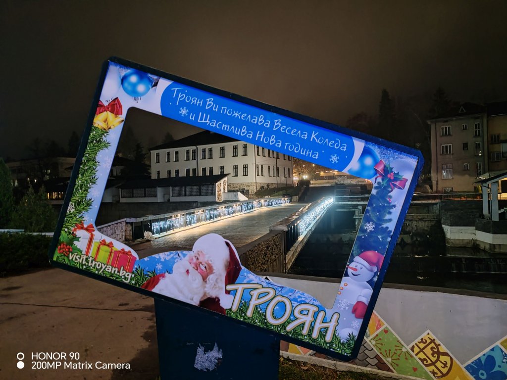 Централният площад "Възраждане" пред сградата на Община Троян е преобразен като малко коледно градче за радост на родители и на деца. Внушителна елха с ръста на сградата блести в типичните за коледните празници червени и златни тонове, а звездата на върха ѝ огрява околното пространство нощем.