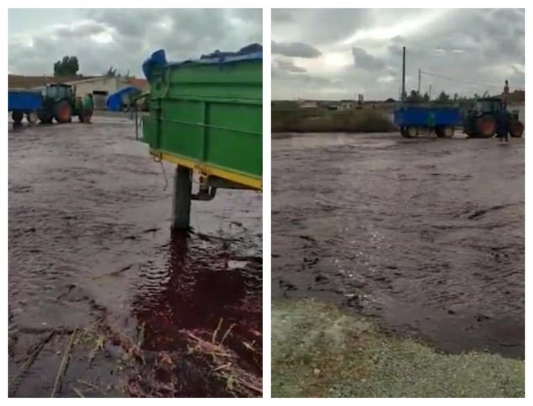 Хиляди литри червено вино се разляха по асфалта в испанска винарна "Витивинос" в провинцията Арабасете, съобщават испанските медии.