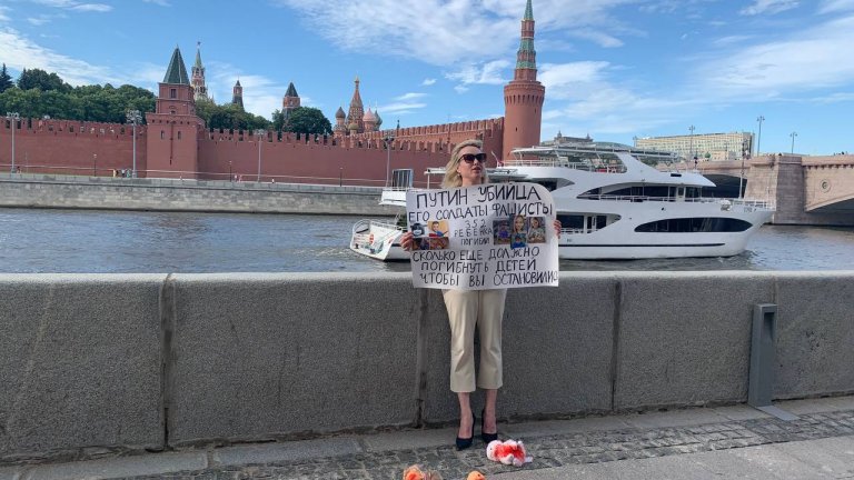 През юли месец миналата година тя се появи близо до Кремъл с плакат на който пишеше "Още колко деца трябва да умрат, преди да спреш?". Журналистката нарече президента Владимир Путин убиец, а неговите войници - фашисти.