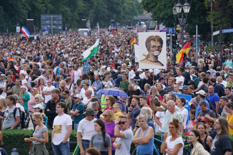 Хиляди германци се събраха на протест в германската столица Берлин на шествие срещу мерките за ограничение на коронавируса.