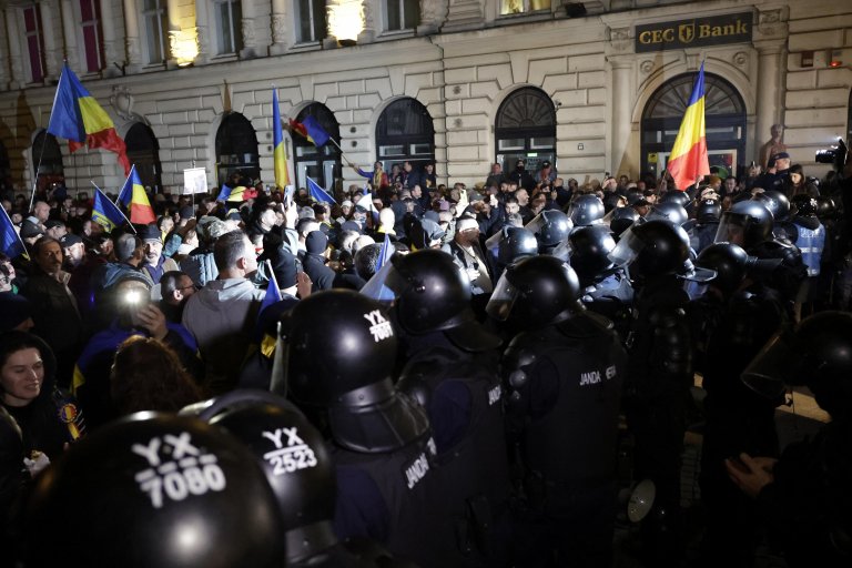 След излизането на новината, че Калин Джорджеску няма да бъде допуснат до вота, негови поддръжници се събраха пред сградата на Централното избирателно бюро и събориха огражденията около нея.
