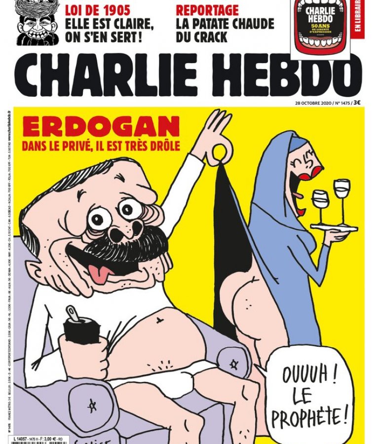 Карикатурата на сатиричното издание идва на фона на продължаващата размяна на реплики между Франция и Турция покрай въпроса за радикалния ислям.
