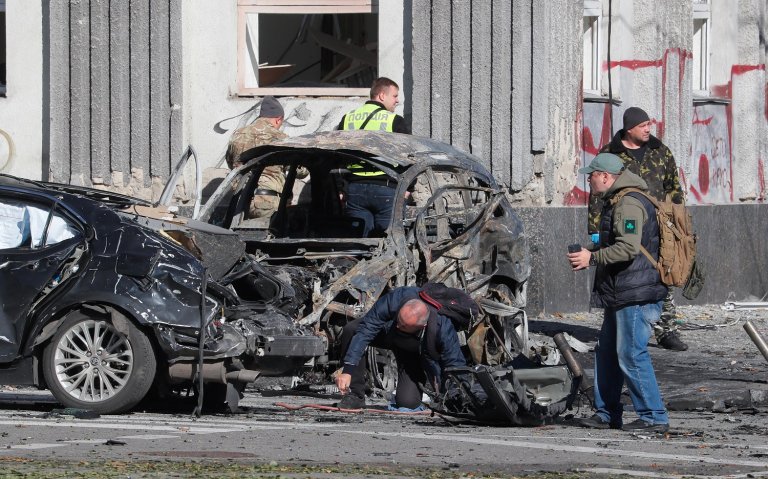 Що се отнася до атаките в понеделник, според Зеленски те са имали за цел да убиват хора и да спрат енергийната мрежа на Украйна. Според премиерът Денис Шмигал са поразени 11 основни инфраструктурни цели. В опит да се справи със спирането на електричеството в свои собствени територии, Украйна спря износа за ток за Европейския съюз (ЕС).