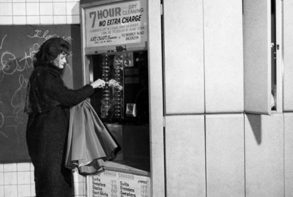 Защо да се измъчвате с ютията у дома, след като автоматът на улицата продава чудесни нови бели ризи? На снимката - машина за ризи в Берлин от 1958 г.
