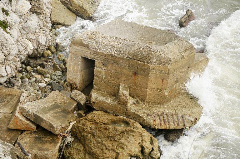 В днешни дни бункерите приличат на странни мегалити по бреговете на протока.