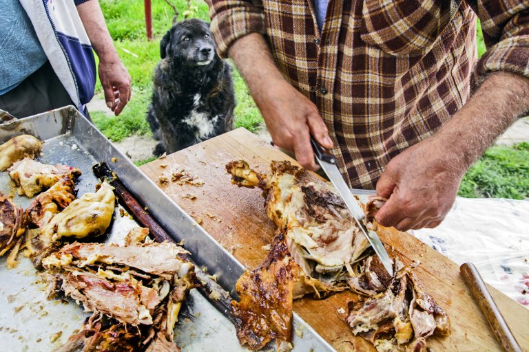 От месото се раздават по-пестеливи порции, за да стигне за всички. Важно на Гергьовден е било не наяждането с агнешко, а всеки да опита от ритуално убитото животно в чест на светеца и да благослови името му, докато яде.