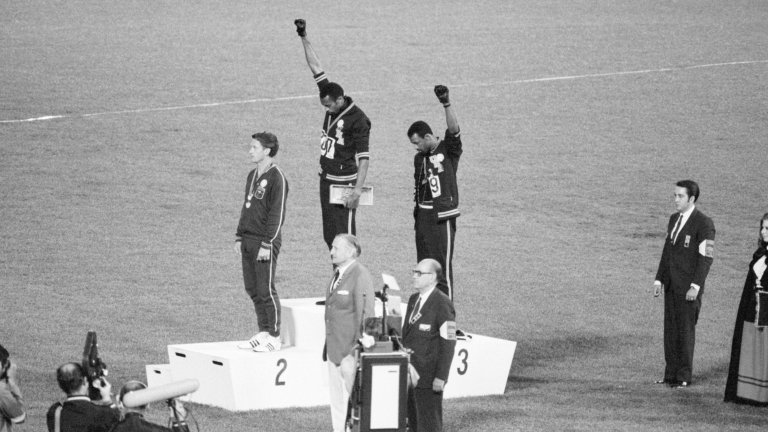 Следващата олимпиада в Мексико се случва в период на мащабни социални вълнения в САЩ заради войната във Виетнам и движението за правата на чернокожите. В особено силен символ се превръщат лекоатлетите Томи Смит и Джон Карлос, които печелят съответно златен и бронзов медал, а за награждаването решават да изразят своите политически позиции.