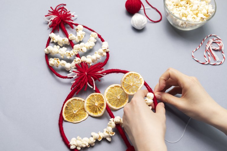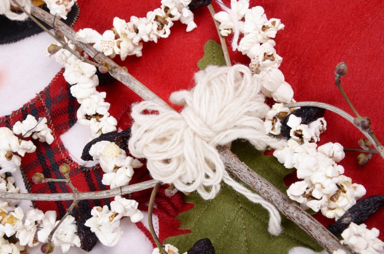 Червеният, белият и синият конец предпазват от зли сили и лоши очи, а пуканките и лютите чушлета са символ на плодородието.