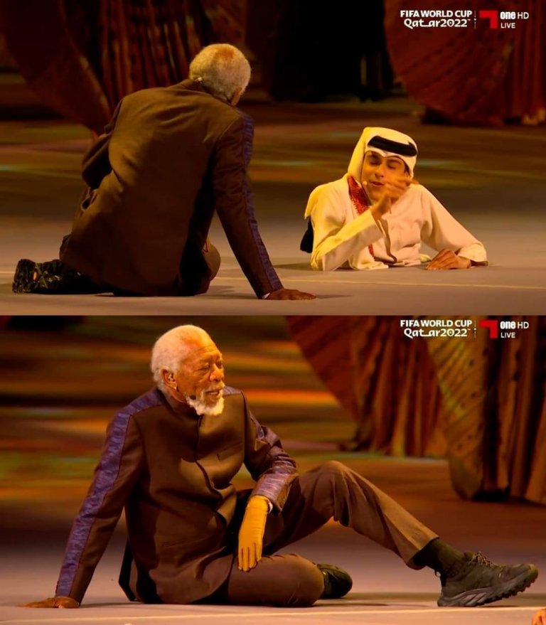 Един от водещите на церемонията бе холивудската звезда Морган Фрийман, който, заедно с катарец без крака, приветстваха откриването на Мондиал 2022.