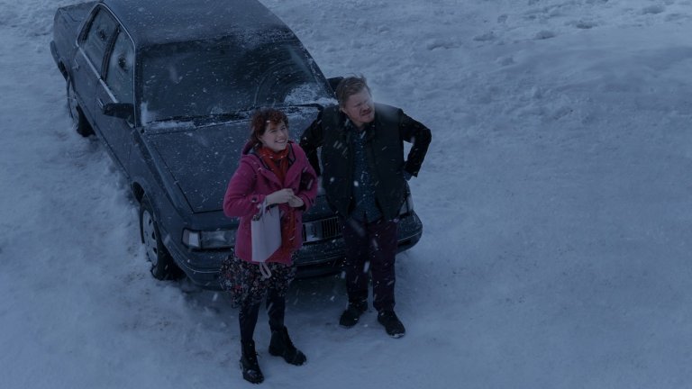 В случая Кауфман буквално ни държи на седалката до двойка (Джеси Племънс и Джеси Бъкли), която тръгва с кола през снега, за да се запознае момичето със семейството на своя приятел.