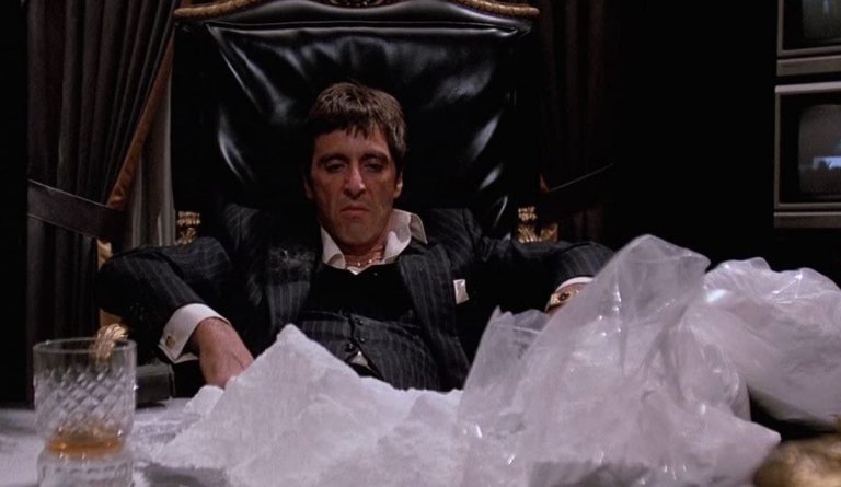 В легендарната лента "Белязаният" пък белият прах, който шмъркат героите, е... бебешки слабителни на прах.