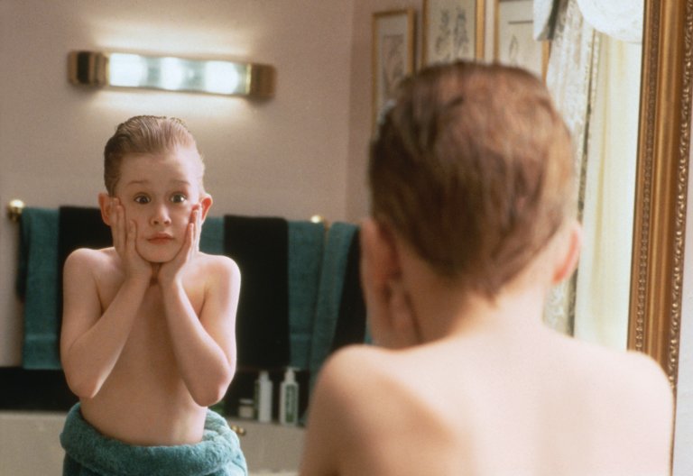 Завършваме с момент от самия финал на филма, когато Марв и Хари хващат Кевин в съседската къща и го закачат за врата. Преди снимките на сцената двамата възрастни актьори искат да репетират репликите си, а Маколи - който няма такива - е съгласен да присъства като фон.