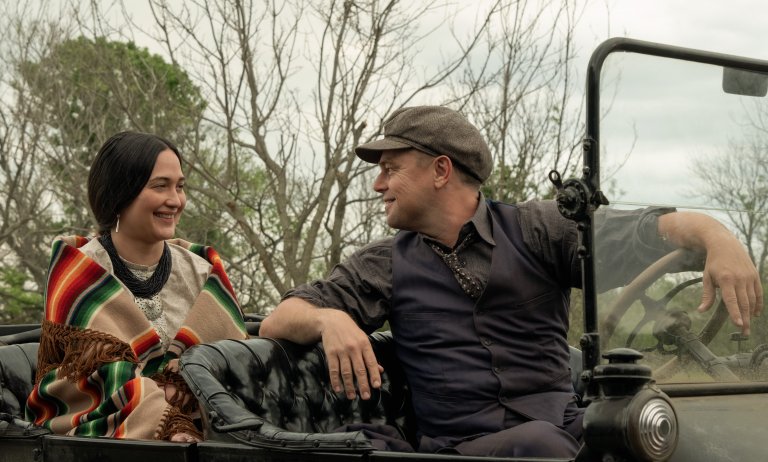 На първия излязъл кадър от "Убийците на цветната луна" - онази прословута снимка, на която Лили Гладстон и Леонардо ди Каприо седят един до друг, героите на филма Моли и Ърнест Бъркхарт се стараят да мълчат, докато наоколо им се вихри мощна буря.