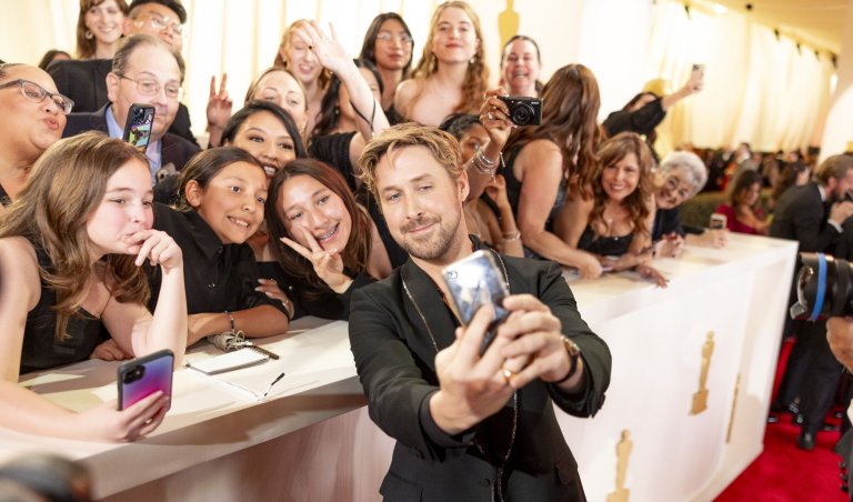 Актьорите, които пристигат последни, са Марго Роби и Райън Гослинг, което според часовника на Роб се случва точно в 7:04:30 ч. - закъснение от близо 5 минути.