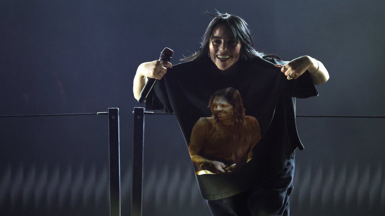 Поп иконата Били Айлиш, която не спечели нито една награда, въпреки редицата си номинации, носеше черна тениска с лика на Хокинс по време на изпълнението на Happier Than Ever.