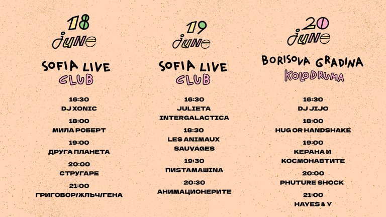 Поради прогнозата за валежи обаче, организаторите взеха решение да преместят първите два дни от феста на закрито в Sofia Live Club, при силно ограничен капацитет.