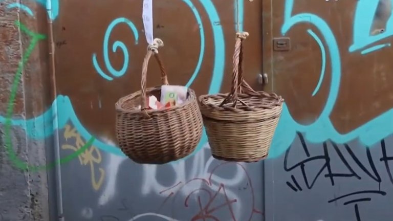 От балконите си, из страничните улички на италианския град, неаполитанци вързаха с подръчни материали кошници и ги напълниха с продукти. Наричат ги "кошници на солидарността". В тях онези, които имат какво да дадат, поставят продукти за хората, останали без работа и доходи.