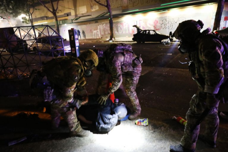 За да разпръснат протестите, федералните агенти многократно използваха сълзотворен газ, а полицията обяви случващото се за бунт и написа в Twitter че "насилственото поведение на хората в центъра на града" е "сериозен риск за обществената безопасност". Според властите шестима федерални офицери са били ранени.