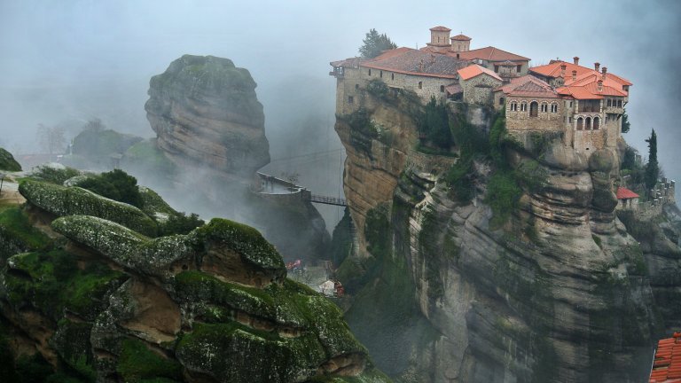 Изумителният скален комплекс Метеора в Гърция включва 9 манастира, от които 6 са действащи. Те са построени на върховете на труднодостъпни високи скали, които се извисяват на 400 метра височина над Тесалийската равнина.