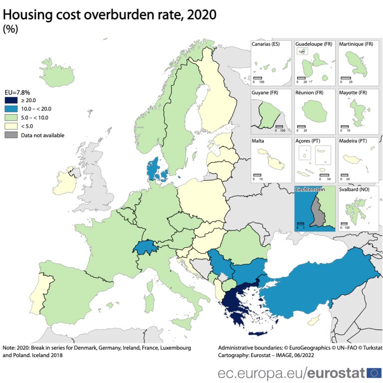 От Евростат отбелязват, че никой не желае да дели пространството си с прекалено много роднини или съквартиранти, но и тук България се нарежда на челните места като страната с едни от най-скъпите жилища и наеми. За 2020 г. над 14 на сто от месечния бюджет на българите е отивал за жилището им.