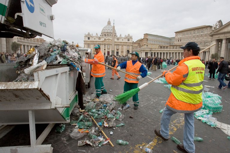Но изглежда, че на градските власти това не им пречи. Разсъждават позитивно, гледат към бъдещето на организираните турове, макар че видимо не могат да се справят с потока на посетители. И това се вижда по контейнерите от боклуци, които преливат с отпадъци - както в централната част на Рим, така и по периферията.
