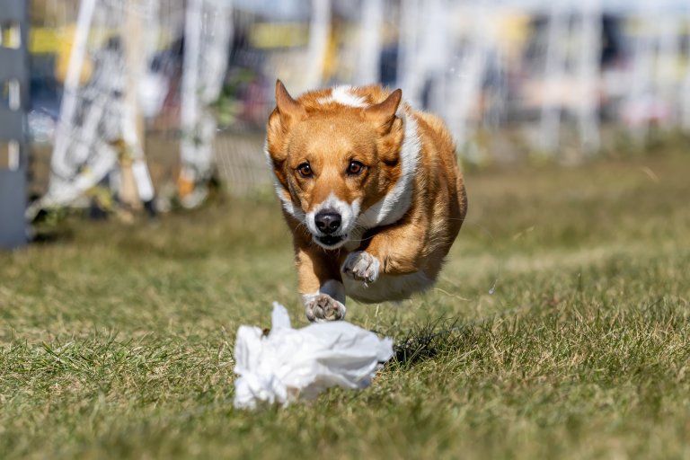 Когато торбата е изпусната ей така, по невнимание, кучето е напълно неподготвено и усеща, че трябва да се мобилизира изключително бързо.