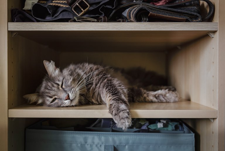 Доста котки се крият в спалнята на собствениците си, и най-вече в гардероба. Там е тъмно и има страшно много миризми, обикновено свързани с хората, с които живее писаната.