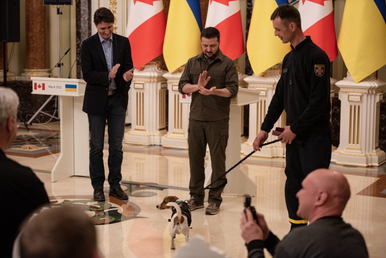 Дребният Джак Ръсел териер е и носител на медал, лично връчен му от президента Зеленски, макар че кучето заспа не особено геройски на последвалата пресконференция. Точният термин за кучета като Патрон е "снифър" - куче, надарено с изключително обоняние и тренирано да открива различни неща.