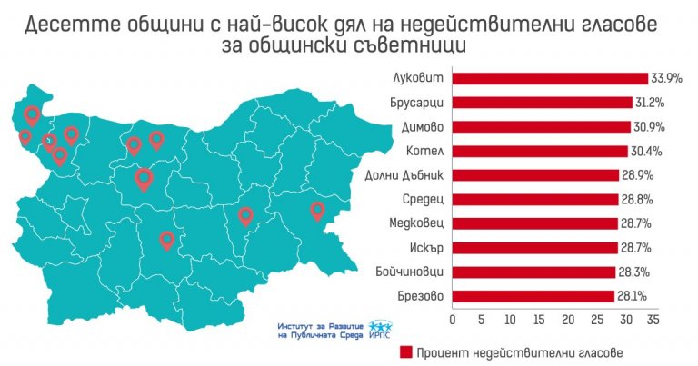 В анализа си ИРПС посочват, че в по-малките общини, а и не само, няколко гласа могат да променят състава на местния парламент, като е трудно да се предположи какво ще бъде доверието в работата на общински съвет, в който формацията с най-много представители е получила само няколко гласа повече отколкото са недействителните гласове в общината.